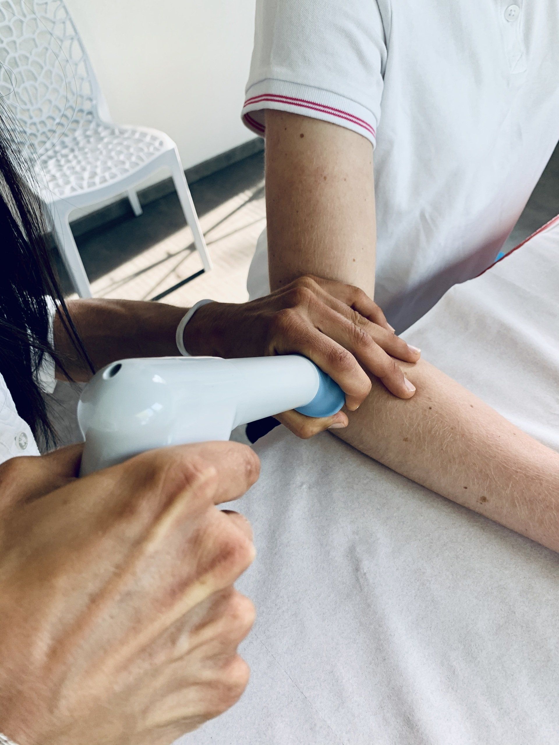 . ondes de choc . laser à haute intensité . thérapie manuelle . tape . raffermissement . amincissement . etc .